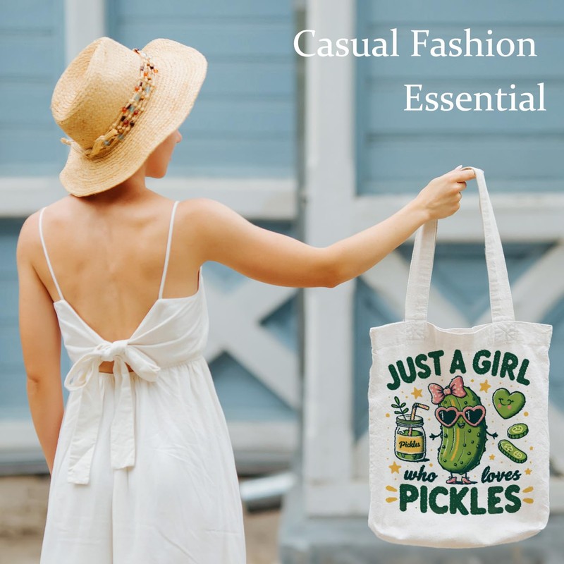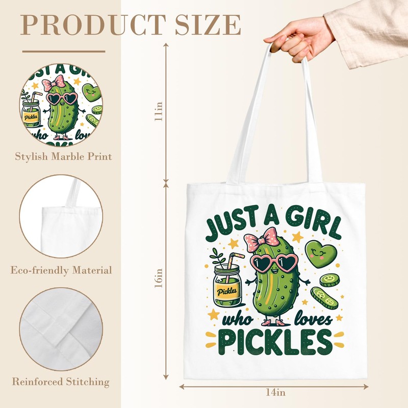 LADOCK Funny Pickle Tote Bag, Pickle Lover Gifts Canvas Tote Bags for Women, Just a Girl Who Loves Pickles Reusable Grocery Shopping Bags