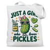 LADOCK Funny Pickle Tote Bag, Pickle Lover Gifts Canvas Tote Bags for Women, Just a Girl Who Loves Pickles Reusable Grocery Shopping Bags