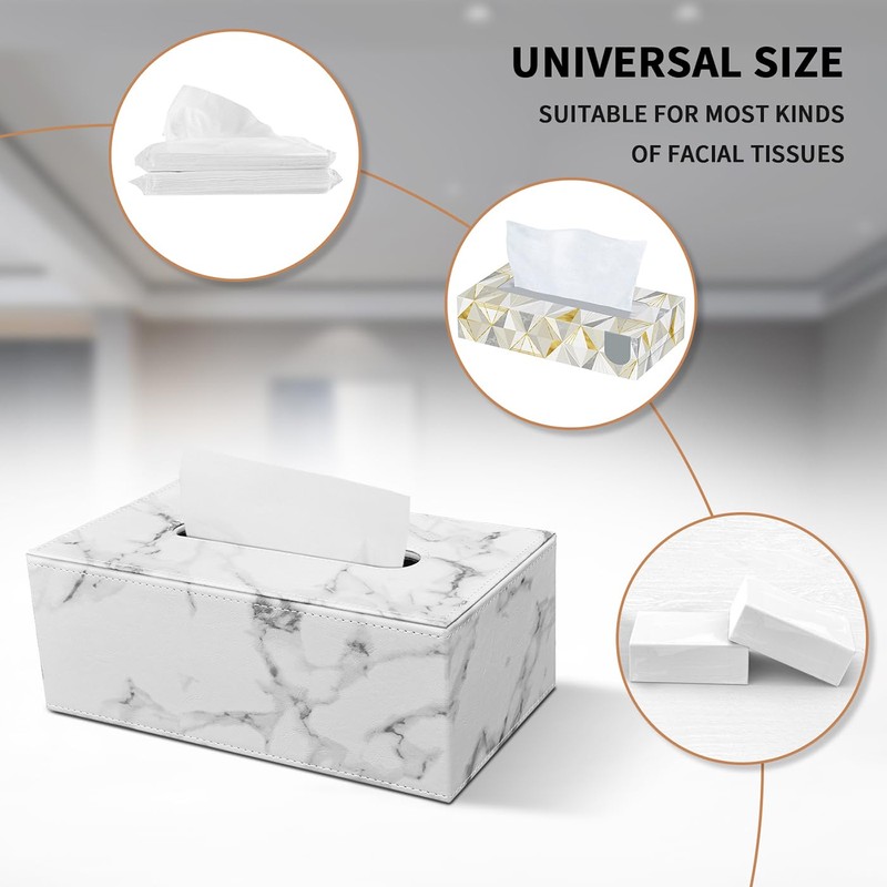 - 【Hochwertiges Material】 Hochwertige wasserdichte PU-Lederoberfläche und eingebaute hochdichte Faserplatte machen die Taschentuchbox robust und leicht zu reinigen. Es hat ein solides Gewicht von 0,5 kg, sodass Sie die Taschentücher problemlos entnehmen können, ohne dass sich die Box anhebt.
