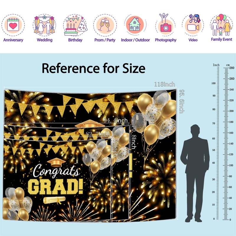 Ladvis Black Gold Graduation Backdrop, Class of 2024 Backdrop Congrats Grad Background Class Off Congrats Prom Party Decorations, 82.7"X59" Fabric Indoor Outdoor Banner Photography Photo Booth Props