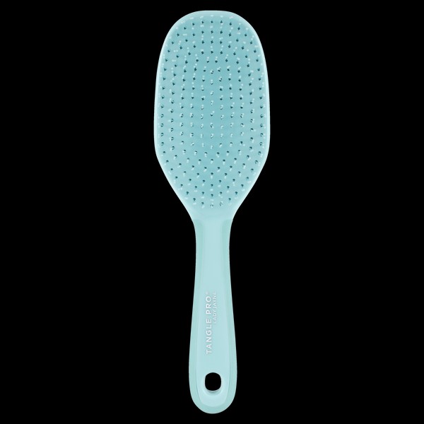This detangling brush features super fine, fused tip bristles that detangle hair effortlessly, while the flexible soft bristles minimize hair breakage with no tugging or snagging. Its unique contoured head curves to the shape of your scalp for optimum results, and its ergonomic non-slip handle provides comfortable and easy detangling. This brush is great for use on long, thick, or curly hair.
