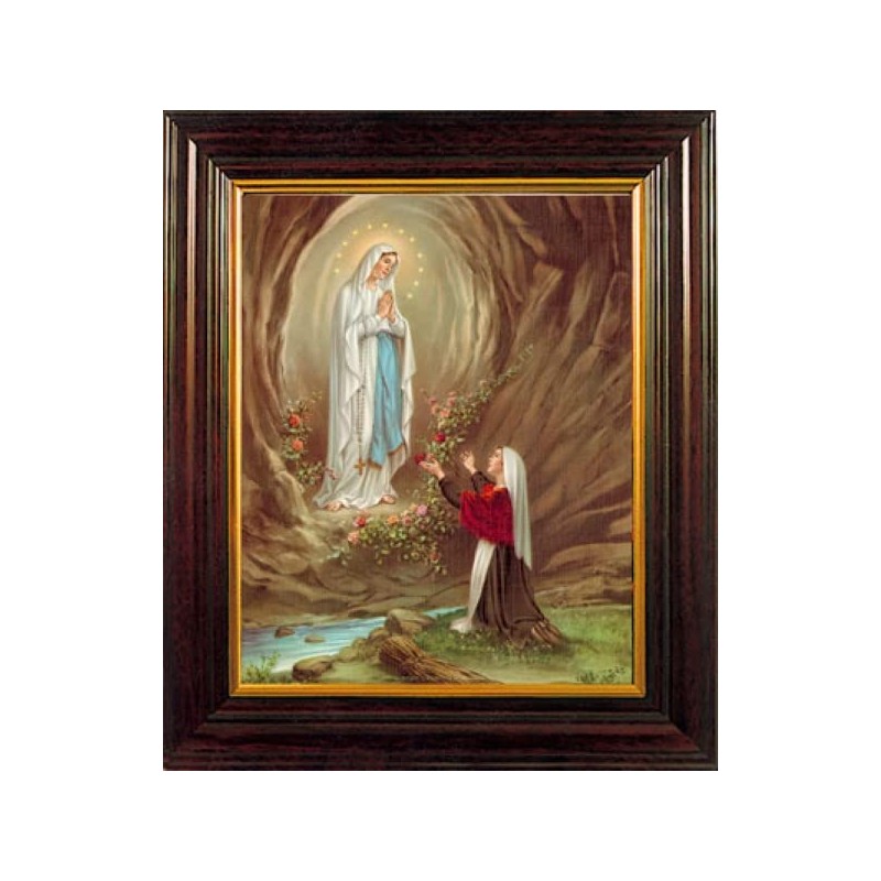 Lady of Lourdes Framed Picture Home Blessing Wooden Frame Religious Image