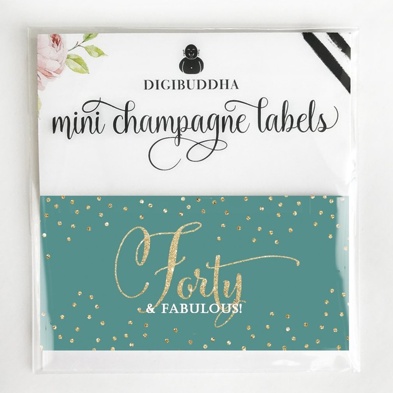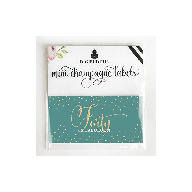 Lordy Lordy Look Who’s 40 and She’s Looking FAB! These gorgeous 3.5" x 1.75" turquoise & gold sparkling mini champagne & wine bottle decals are perfect for the 40th birthday celebration for that special lady, and a brilliant way to set the theme for her entire birthday festivities. She’s everything to her family & friends & they just want to say Cheers to Forty wonderful years! These beautiful decals are multi-purpose & can also be used for guest party bags, table favors or thank you gifts. Order extra & be certain you have enough for all your creative decorating ideas!