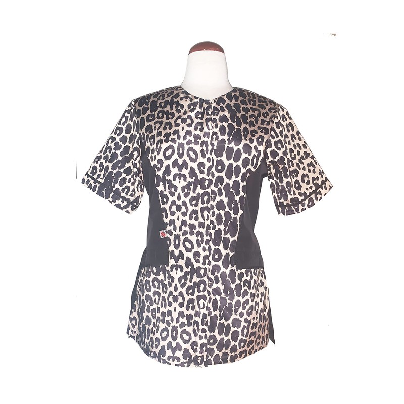 When you work as a professional, image is everything. Make a great first impression with the leopard print color block pet grooming smocks. The front of these pet grooming smock is waterproof and hair resistant and the back is a solid lightweight hair resistant and water-resistant polyester. These pet grooming smocks are designed with functionality in mind plus the added fashionable color block front styling features to ensure you look your best and always impress while doing your job. Ladybird Line is where function and fashion meet.