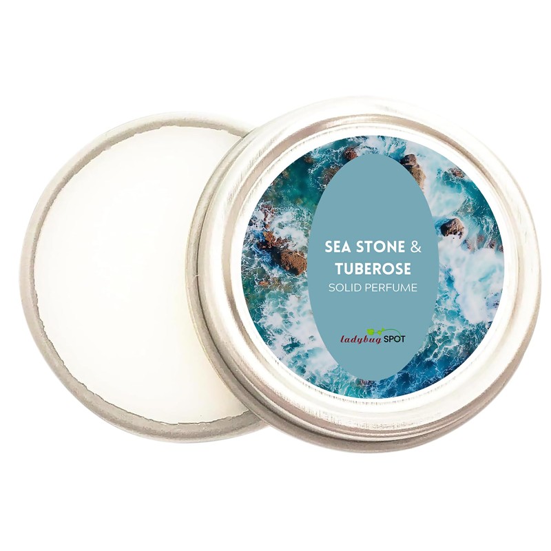 Ladybug Spot Destination Collection Solid Perfume | All-Natural & Handmade in USA | Phthalate-Free Carcinogen-Free Toxin-Free | Essential Oil Infused Fragrance | 1/4 oz Tin Jar (Sea Stone & Tuberose)