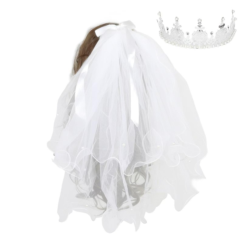 - With your comfort in mind You will receive a hairbrush type white veil and a small crown for your head.