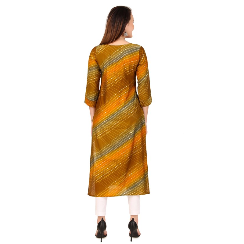 ladyline Knee Length Tunic Kurti Leheriya Printed Gold Zari Embroidered Kurta Top (RPEK SHDG1090) (48/ Mustard)