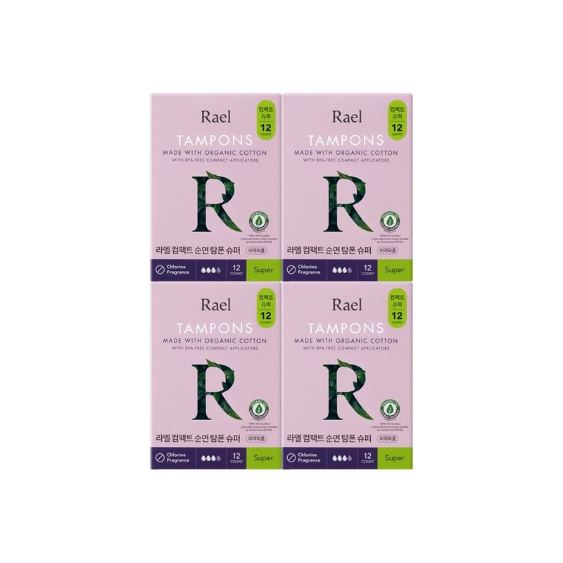 Lael organic cotton compact tampons 4 packs (light/regular/super), compact tampons light 4 packs / 라엘 유기농 순면 컴팩트 탐폰 4팩(라이트/레귤러/슈퍼), 컴팩트 탐폰 라이트 4팩