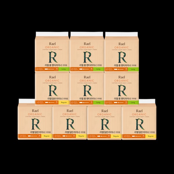 Lael organic cotton cover panty liners 10 packs (regular/long), 5 regular liners + 5 long liners / 라엘 유기농 순면커버 팬티 라이너 10팩 (일반/롱), 일반라이너5+롱라이너5