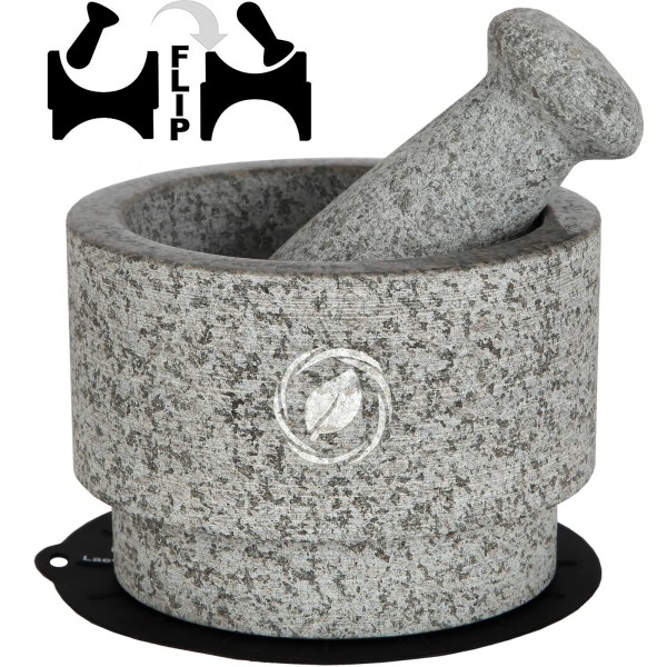 Laevo Mortar and Pestle Set (Large) | Gray Granite | Stone Spice Grinder | 2....