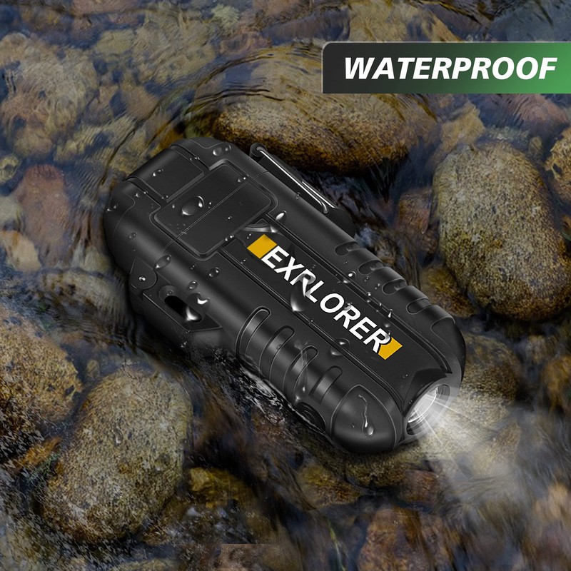 - Re-define the Survival Lighter: The survival lighter can’t only be used for simple fire starter in outdoor. To have a critical role in outdoor survival, it has a study silicone rubber shell which is hard to break. There is a flashlight on the bottom of lighter, with the extra whistle carried on the lanyard. Both are necessary in outdoor. Lanyard was made of special material which can be used a “tinder” for fire starter.