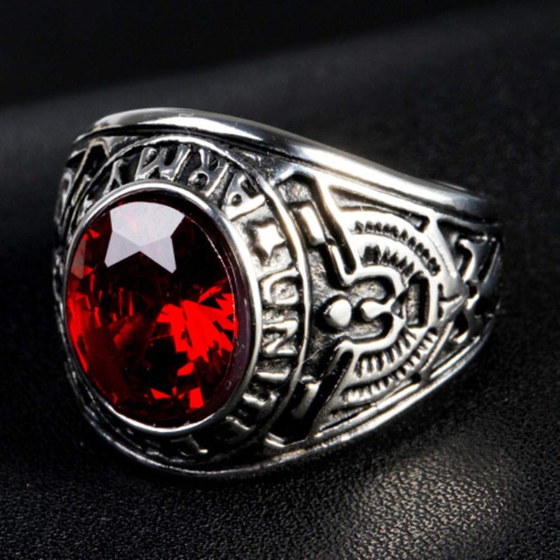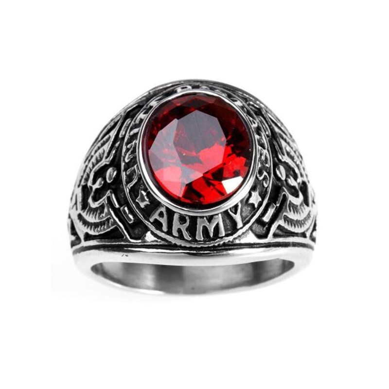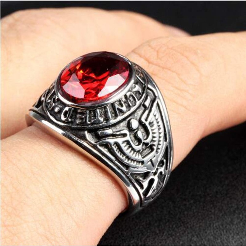LAFATINA Military United States Army Ring Men's Stainless Steel Red Ruby Oval Glass Stone Bands Ring, Size 11