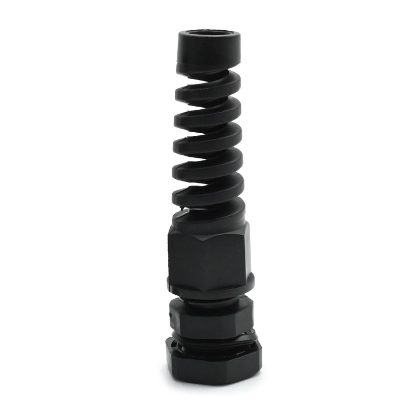 laffoonparts 10 Pcs IP68 Cable Gland with Gaskets, NPT 1/4" Waterproof Cable Gland, Adjustable Locknut Flex Spiral Strain Relief Cord Connector for 3-7mm Wire Thread (Black)