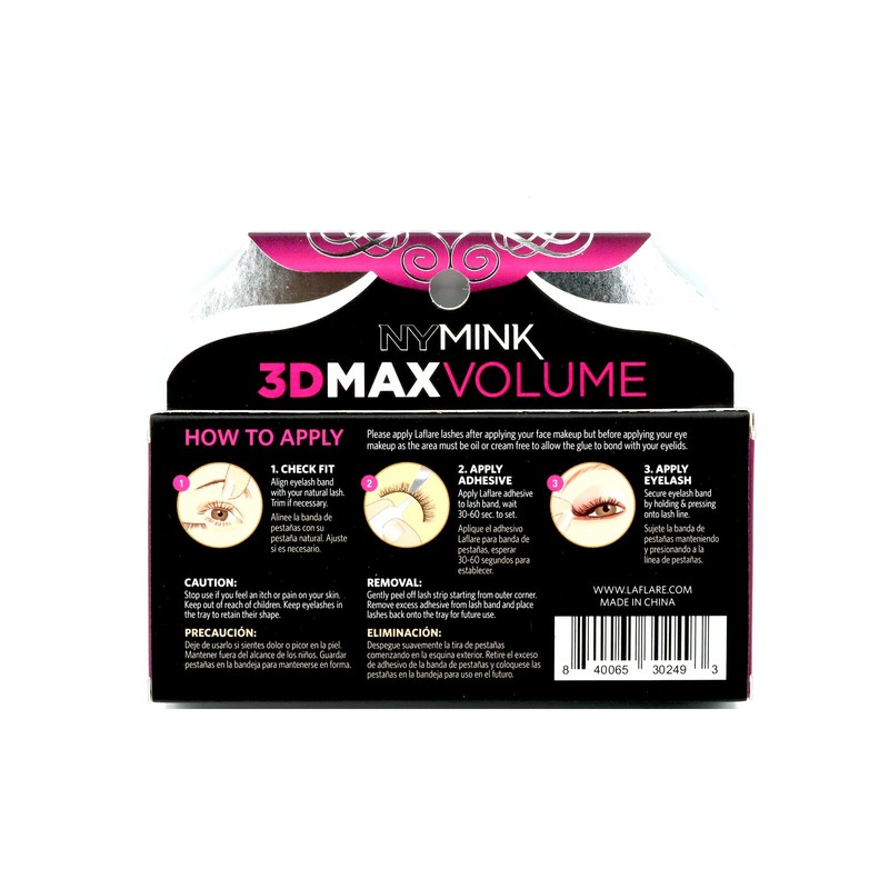- 【PACKAGE INCLUDES】 A single 3D NY MINK MAX VOLUME pack. There is no glue in the package, you could use this along with our Laflare 3D lashes glue and be assured make your eyes charming all the day and night.