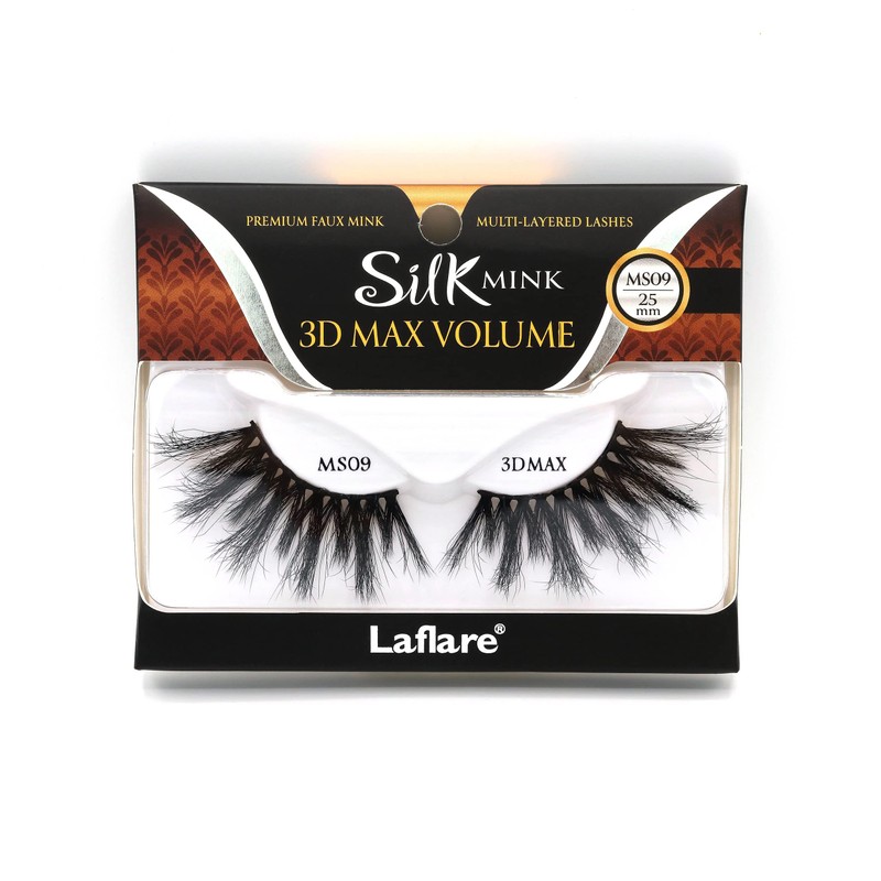 Laflare 3D SILK MINK MAX VOLUME Premium Faux Mink 25mm Extra Long Eyelashes, Cat Eyes, Wispy, Fluffy, Soft as Mink, Multi-layered Dramatic Volume False Lashes (LFMS-MS09)