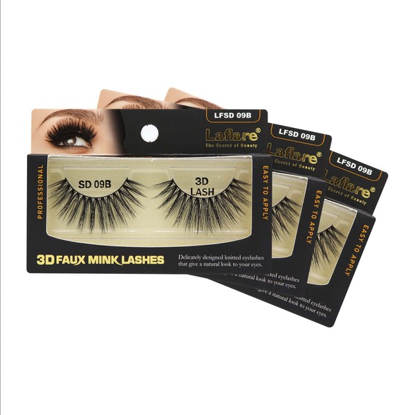 Laflare Silk Lashes 3D FAUX MINK Eyelashes, Light, Reusable, Handmade, Natural Looking, Professional Easy to Apply Eyelashes in a Knitted Style2-3 PACKS BUNDLE SPECIAL (3, SD09B)