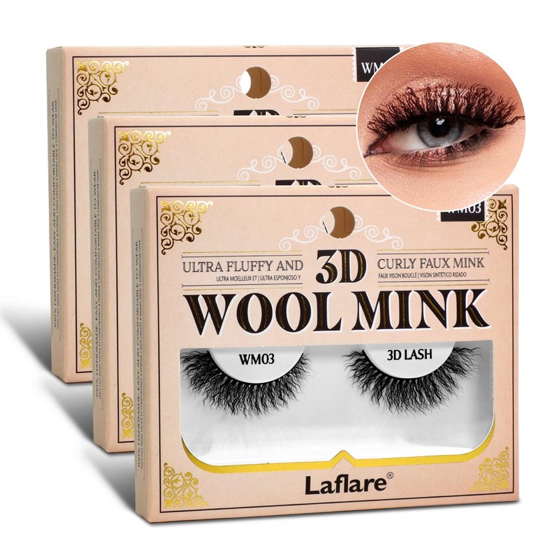 Laflare Wool Curl Faux Mink 3D Eyelashes | Lightweight, Reusable | Ultra Fluffy, Frizzy Curly | Unique & Trendy Look Eyelashes. (LFWM-WM03)