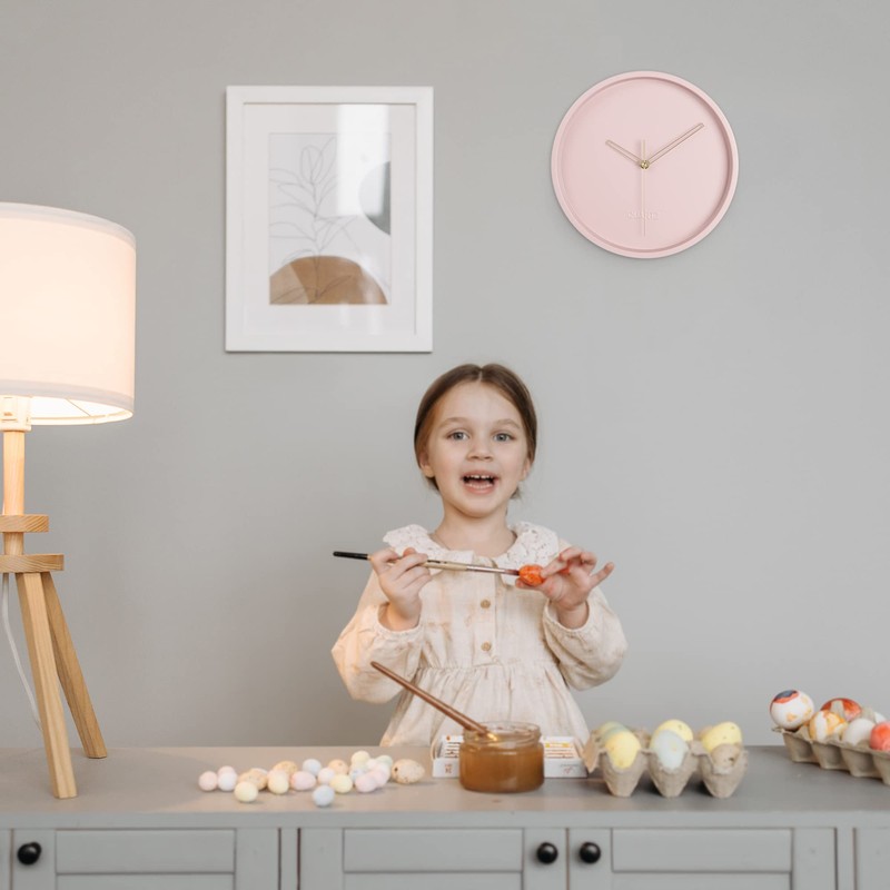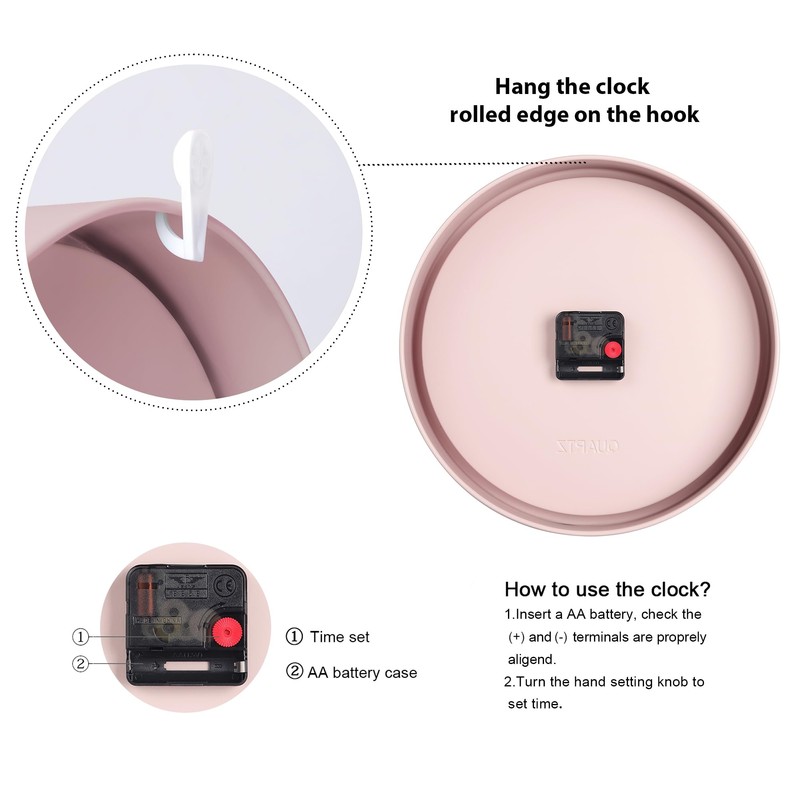 - MINIMALIST & CREATIVE DESIGN This modern wall clock is a true functional beauty. Designed with no numbers or markings, the simple dial has nothing but clean pink surfaces, it's our ode to pure minimalism. Liven up your home decor over time with this lightweight luxury circle wall clock.