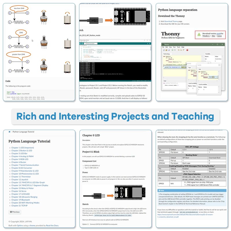 LAFVIN Super Starter Kit for ESP32-S3-WROOM Projects with Ultrasonic Sensor, ...