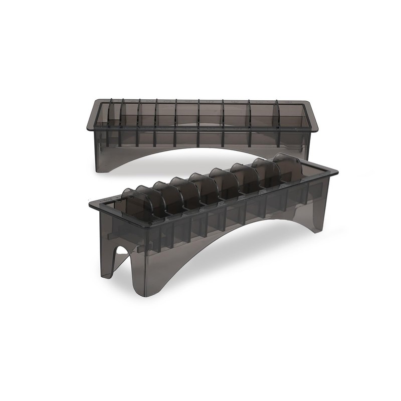 This organizer is cleverly designed with sections to efficiently store and organize a wide variety of guide combs. The design ensures that the combs are neatly organized, making it easy for hairdressers to find the tools they need in the middle of a busy day.