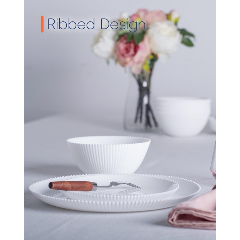 LaGlint Dinnerware Sets for 4, 12 Pieces Opal Glass Plates and Bowls Set, Dishwasher and Microwave Safe Ribbed Dish Dinning Ware, Chip and Scratch Resistant Dishware, White