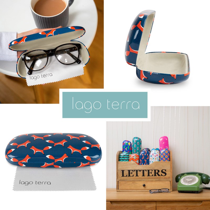 LAGO TERRA Fox Print Hard Shell Glasses Case - Navy Fox