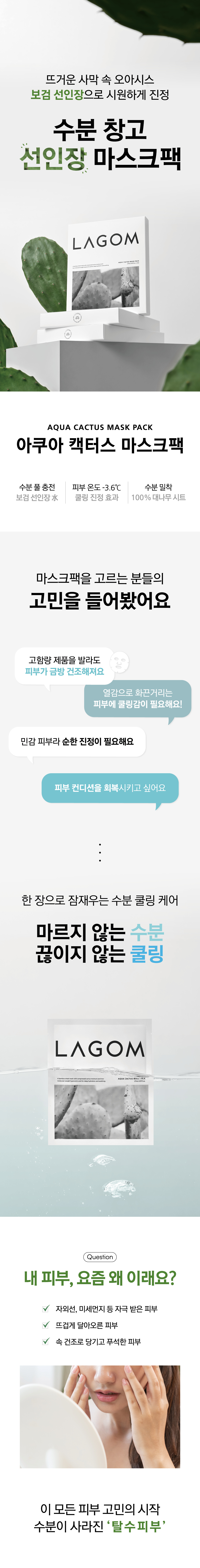 Lagom Aqua Cactus Mask Pack 27ml (5 sheets) / 라곰 아쿠아 캑터스 마스크팩 27ml (5매입)