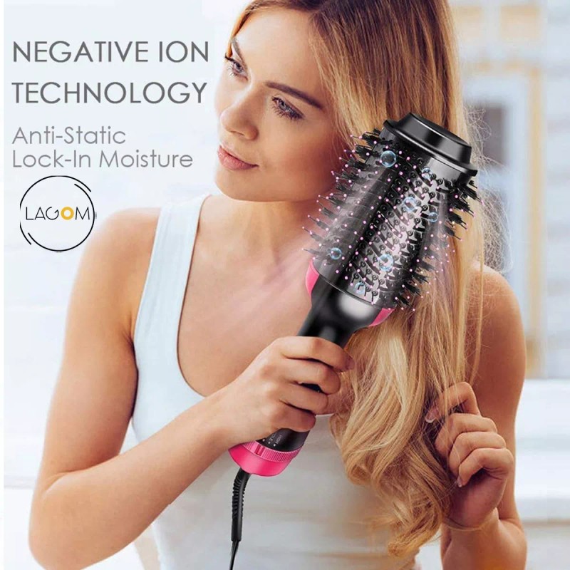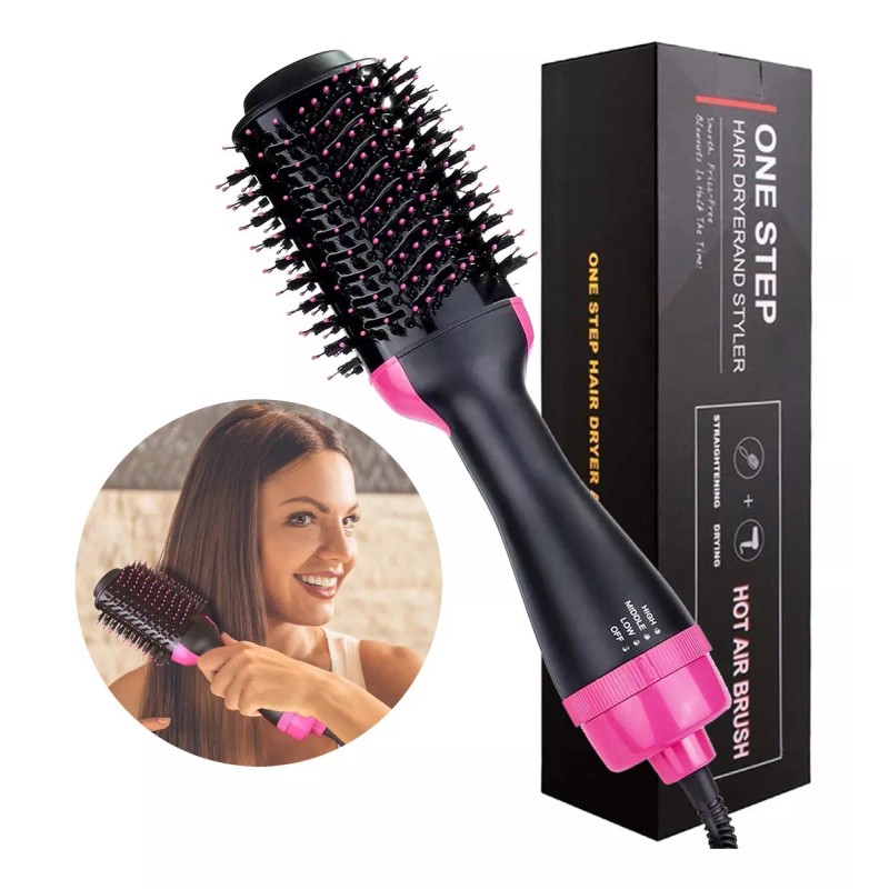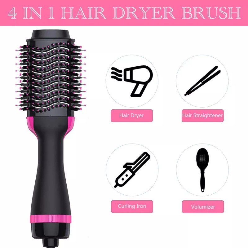 Secadora Cepillo 4 en 1: One-Step Profesional Styler . Este versátil cepillo de aire caliente se puede utilizar como secador de pelo, cepillo, alisador y rizador para aumentar fácilmente el volumen de tu cabello, dejándolo suave, sedoso y naturalmente lustroso mientras sella la cutícula del cabello, reduce las puntas abiertas y los nudos. Relájate. estilo salón en su propia casa.
