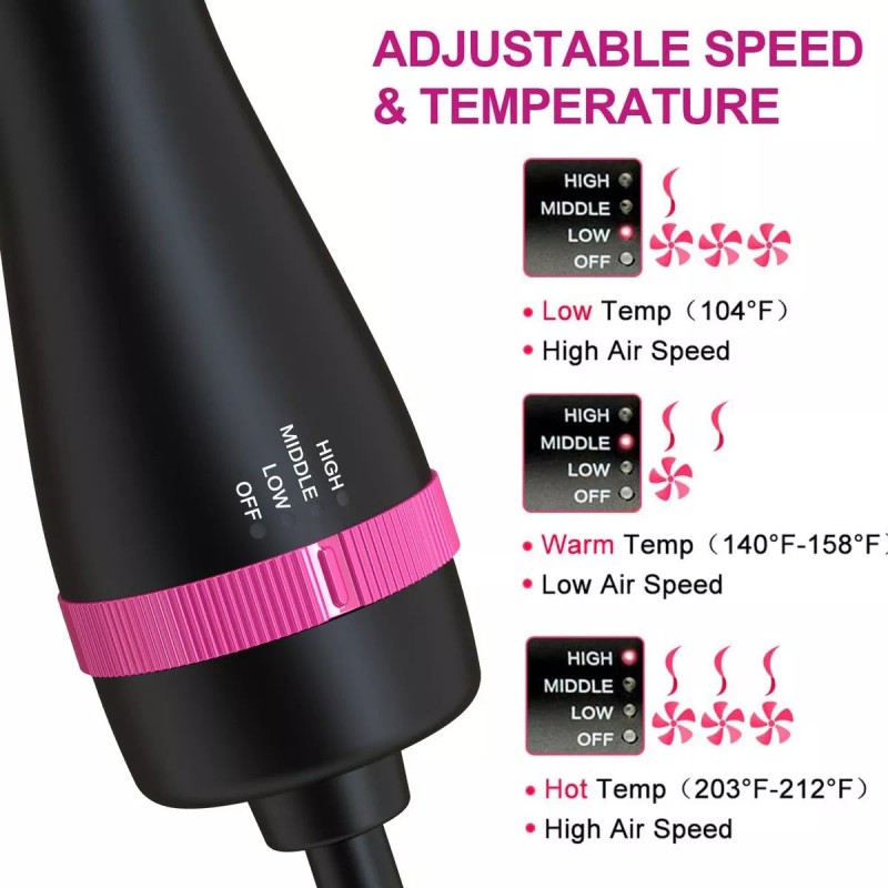 Control de Temperatura de 3 Niveles: Este cepillo secadora de cabello tiene 3 configuraciones de modelo de calor/velocidad alta,media,baja), el calor alto es adecuado para cabello grueso, el calor bajo es adecuado para cabello fino, también puede ajustarlo según su propia comodidad, para cumplir adecuadamente con los requisitos de temperatura de un estilo cómodo.
