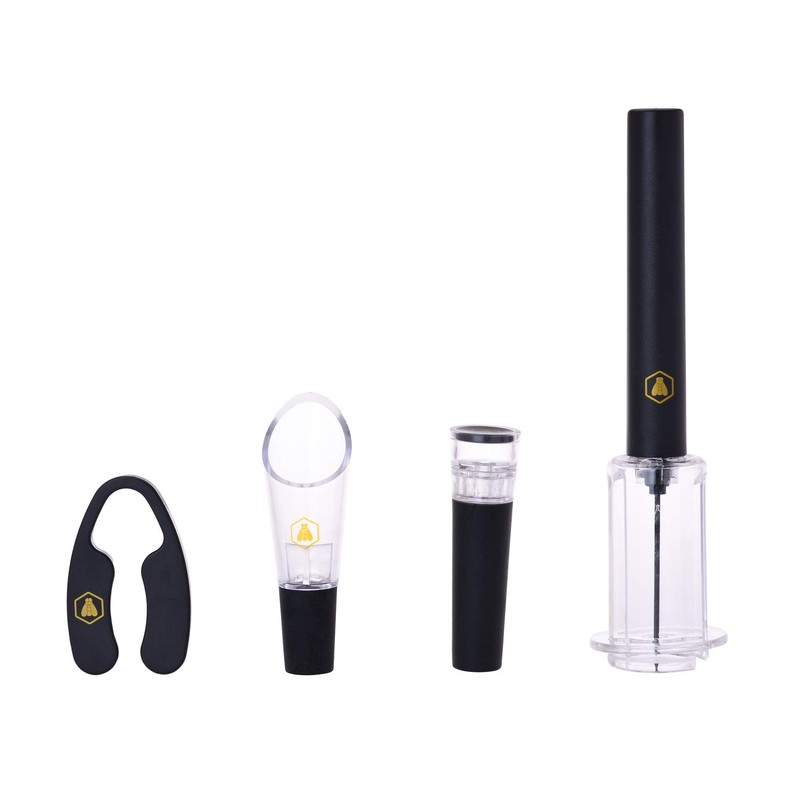 - 4 ACCESSORIES: This pretty wine box consists of an air pressure corkscrew, a ventilation nozzle, a stopper cap and a capsule cutter.