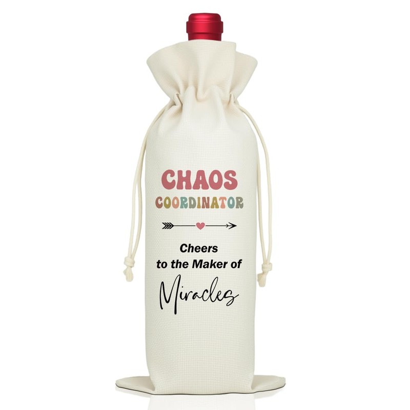 LAGZDFC Chaos Coordinator Wine Champagne Gifts Bag, Reusable Wine Wrap Bag, Thank You Appreciation Gifts for Wedding Planner, Inspiration Work Gift for Teacher Nurse Employee Boss Admin Assistant