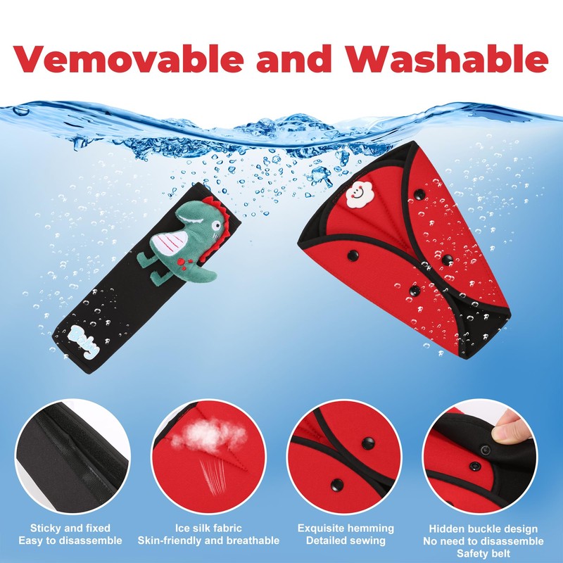 - Easy to use and remove: Velcro and button design for easy attachment and changing. It is very convenient to attach the seat belt cover and adjuster to the belt to create a more comfortable and safer seat for the child in seconds.