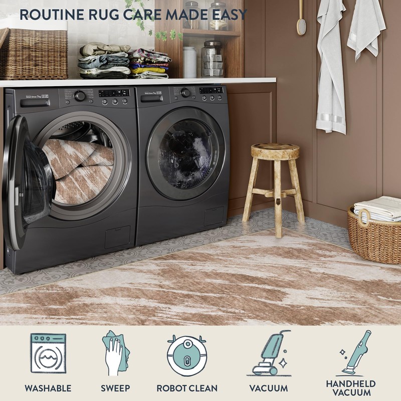 - Machine Washable Rugs: Ideal for families with pets and children, simply throw the rugs in the washing machine for the convenience of life. Use the small handheld vacuum for daily care to remove snack crumbs or hair. Also wipes up spilled drinks