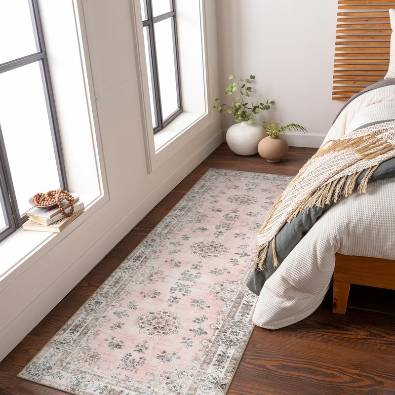 Lahome Pink Runner Rug 2'6"x8' with Rubber Backing, Boho Machine Washable Carpet Runners for Hallways Entryway Non-Slip, Soft Floral Pastel Indoor Mat for Bedroom Kitchen Laundry Bathroom RV