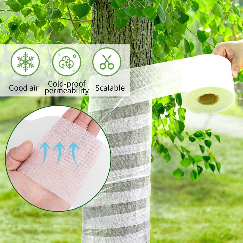 - Durable Material: The tree wraps to protect bark is made of high-quality non-woven fabric, which is tear-resistant, durable, reusable, anti-freeze, lightweight, and has good air permeability and light transmission, allowing trees to be free breathable, it also has good thermal insulation and moisturizing properties, effectively protecting trees from the effects of cold.