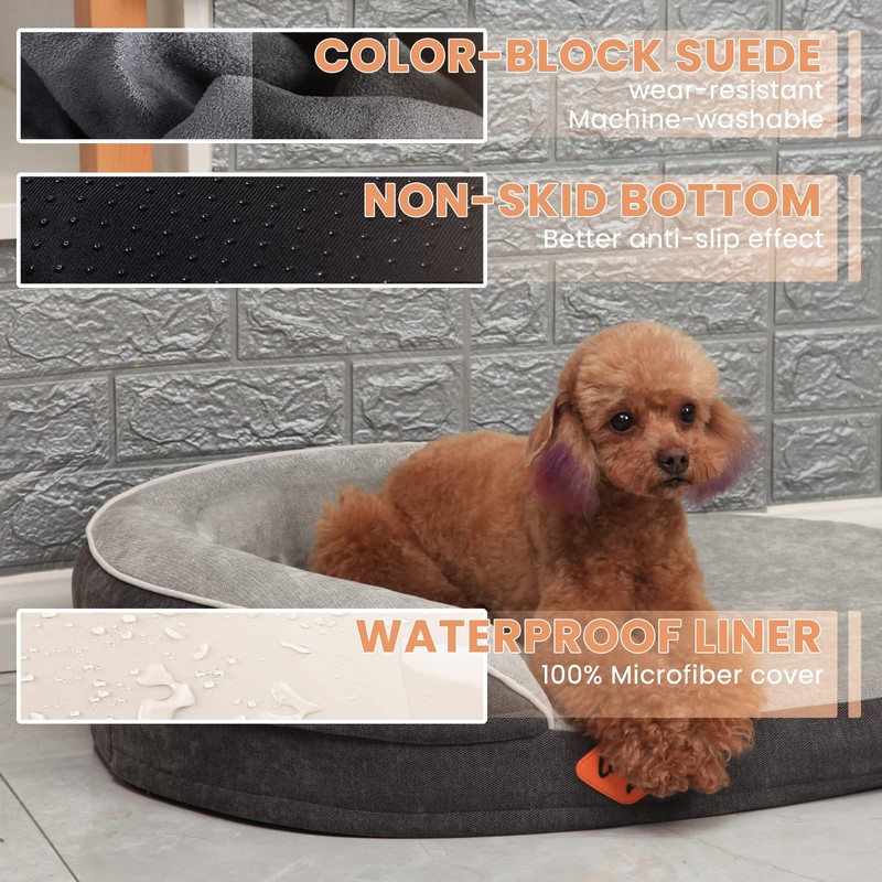Laifug Memory Foam Oval Dog Bed (31x21x7Inches, Grey), Orthopedic Dog Bed for Dogs with Durable Waterproof Liner & Removable Washable Cover & Nonskid Bottom