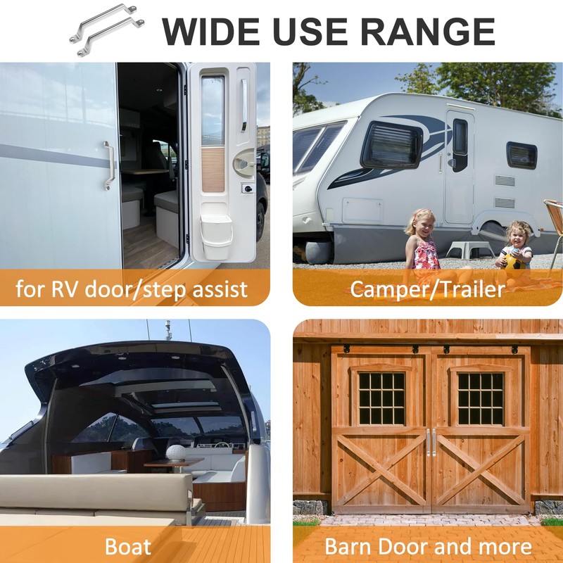- Wide Applications: With a wide range of potential uses, this RV Grab Door Handle is ideal for RV doors, step assists, campers, travel trailers, motorhomes, truck toppers, barn doors, vans, and golf carts. It offers flexible mounting options both horizontally and vertically.