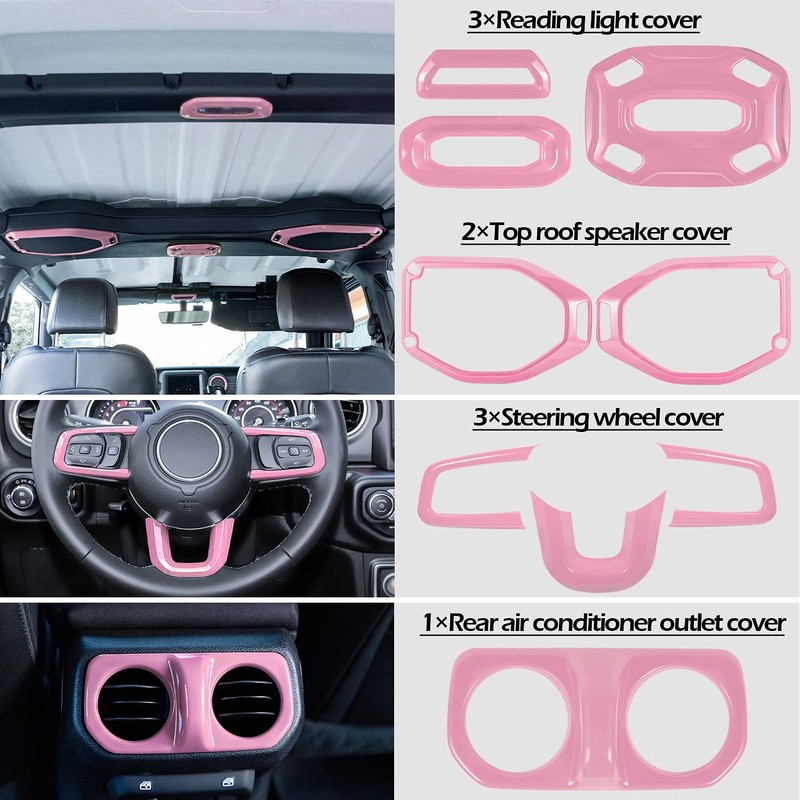 LAIKOU 21PCS Full Set Interior Decoration Trim Kit fit for Jeep Wrangler JL JLU 2018-2023 & Gladiator JT | Air Conditioning Vent Door Handle Speaker Light Headlight Switch Cover (Baby Pink)