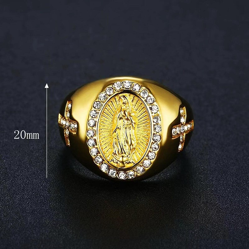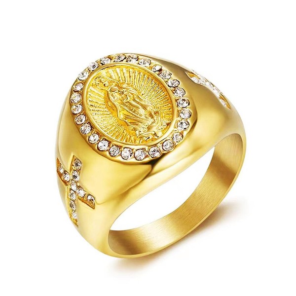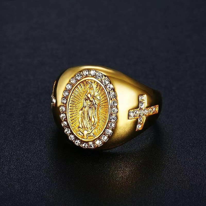 - Features & Design: Santa Maria Cross Catholic style CZ ring plated gold.Attractive and eye-catching, refined workmanship and comfortable fit, punk style, choice for motorcycle riders, parties and everyday wear.