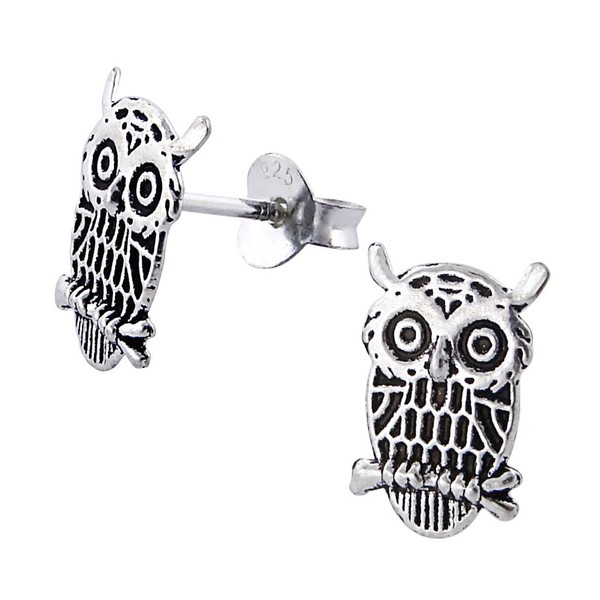 Laimons – Stud Earrings – 925 Sterling Silver – Kids – Owls – Oxidised – Shiny