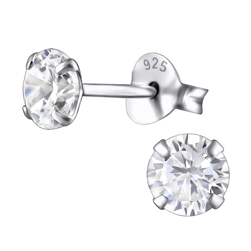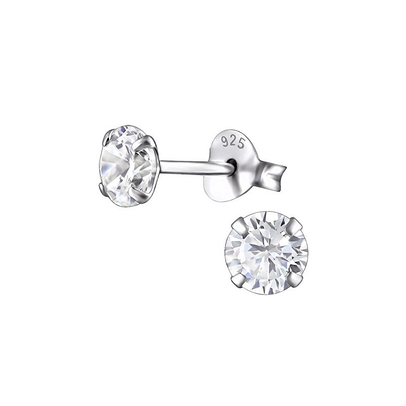 Laimons – Stud Earrings – 925 Sterling Silver – Women – Round – Transparent – Sparkling
