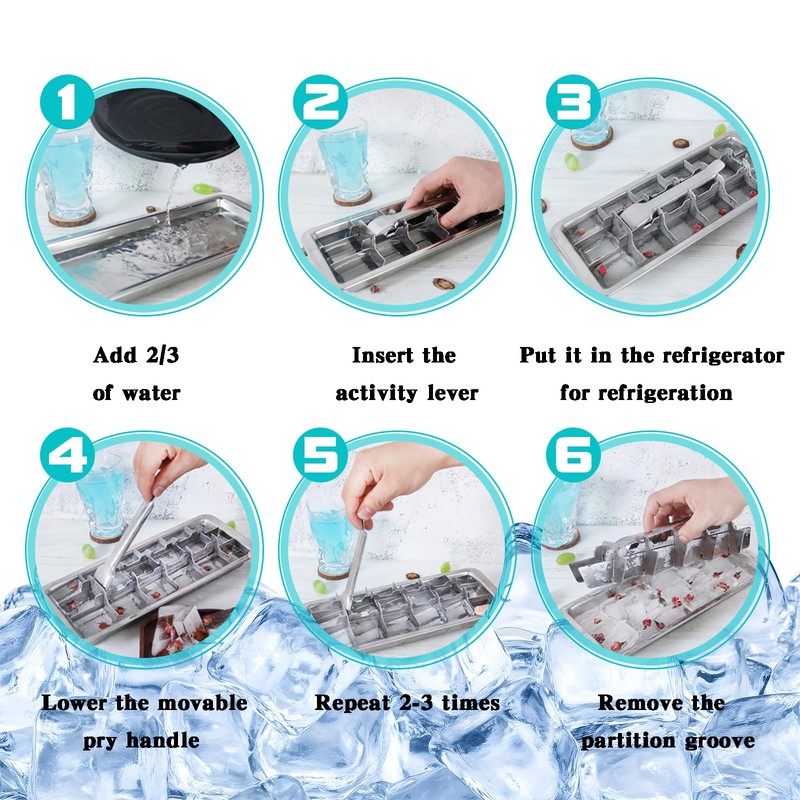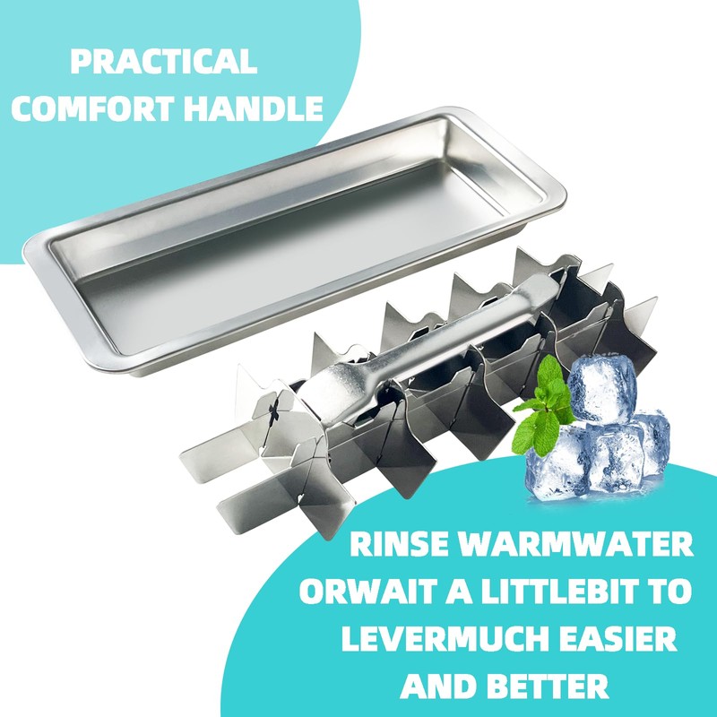 - Easy to use: the stainless steel ice cube tray with removable lever insert allows effortless release of ice cubes thanks to lever technology and short defrosting time. Can also be used as an ice container.