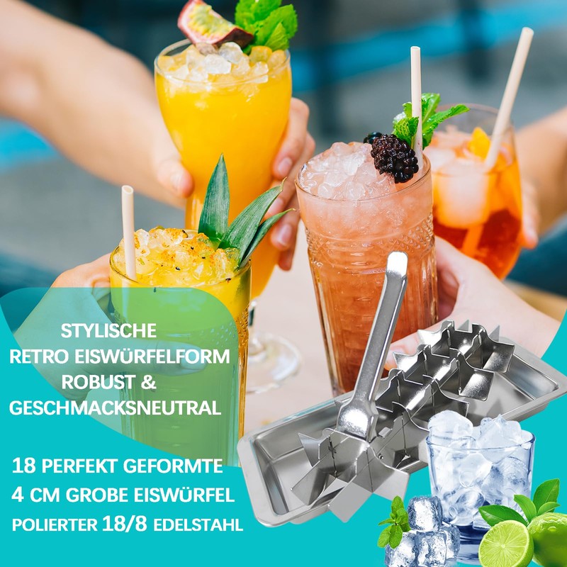 - Durable & Odourless: Our sturdy ice cube tray is made of high-quality processed and polished 304 stainless steel and ensures 18 perfectly shaped 3cm ice cubes - without unpleasant odours or taste.