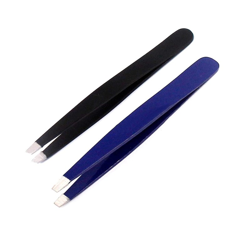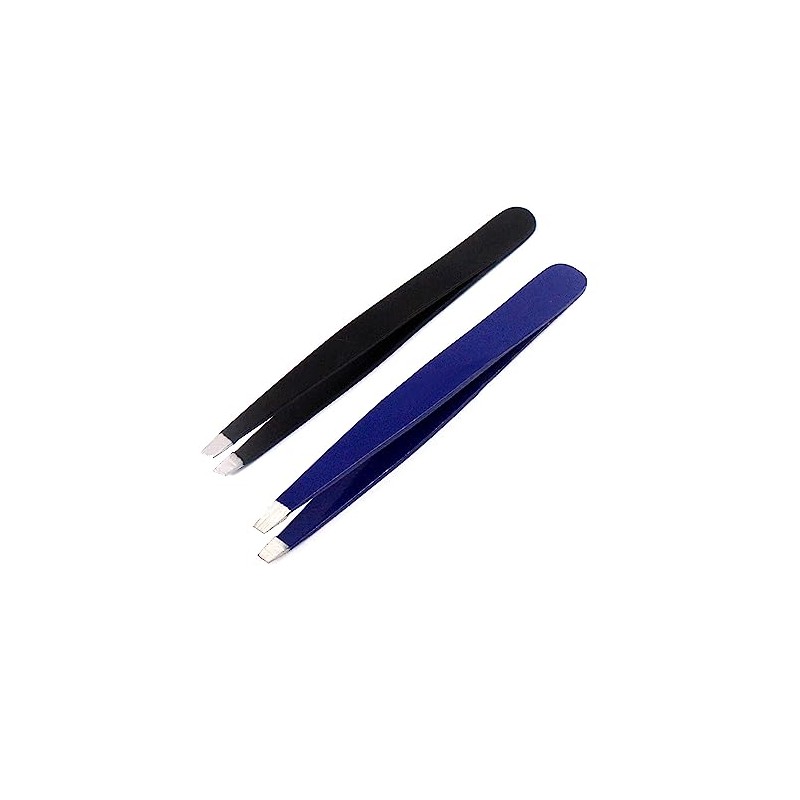 - Slant Tweezers - Professional Stainless Steel Slant Tip Tweezer - The Best Precision Eyebrow Tweezers for Your Daily Beauty Routine! (Blue & Black)