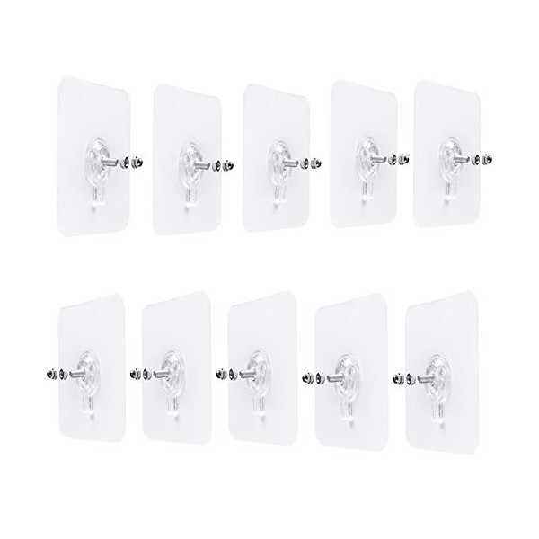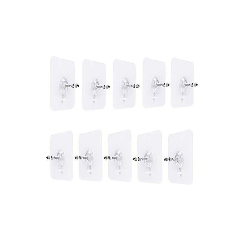 LAJAR 10Pcs Adhesive Wall Mount Screw Hooks , No-Trace Sticker Screw Hanging Nails for Bathroom Kitchen Shower Room (8mm)