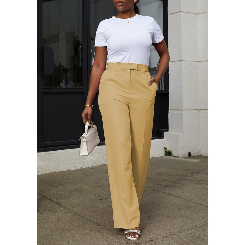 LAJIOJIO High Waist Dress Pants Women Casual,Wide Leg Business Pant Long Trousers with Pockets Yellow
