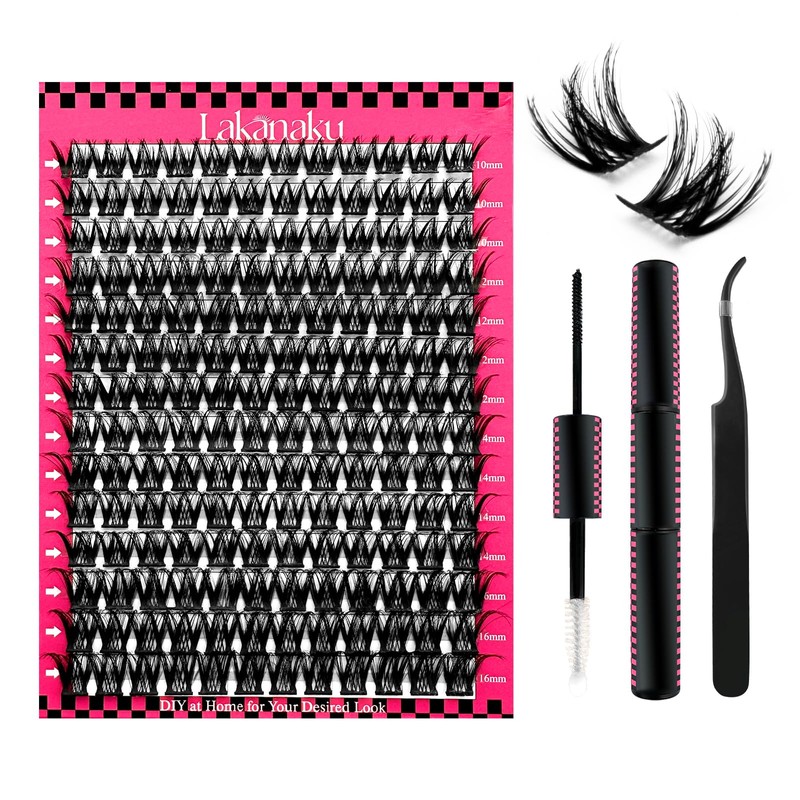 - DIY eyelash extension kit: buy DIY eyelash kit you will receive: 1 tray 280 pieces mixed length cluster eyelashes, 1 eyelash glue and seal (2 in 1), 1 eyelash applicator tweezers. This cluster eyelash extension kit will meet all your needs for DIY eyelashes at home, perfect for beginners and eyelash lovers
