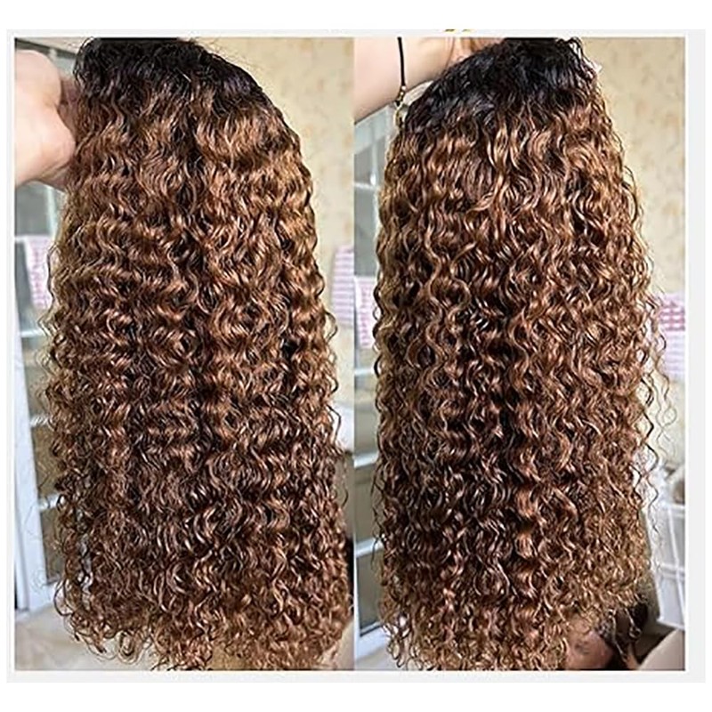 Lakaisa Human Hair Wig 4 x 4 Lace Front Wig Glueless Wig Wear and Go Kinky Curly Wig Grade 8A Brazilian Virgin Hair Free Part 180% Density 1B/30 for Woman 24 Inches (61 cm)