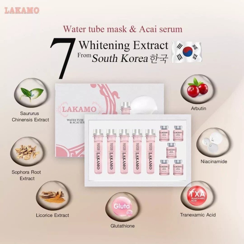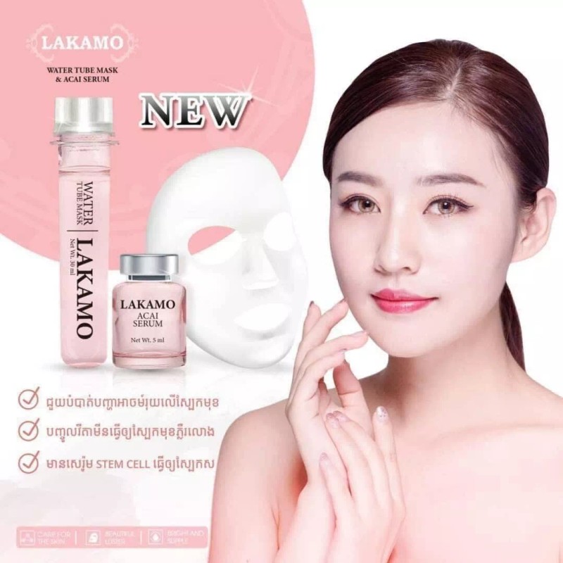 Lakamo Mask Stem Cell ម៉ាសបញ្ចូលស្ទីមសែល ( 1b/5 Mask + 5 Serum ).