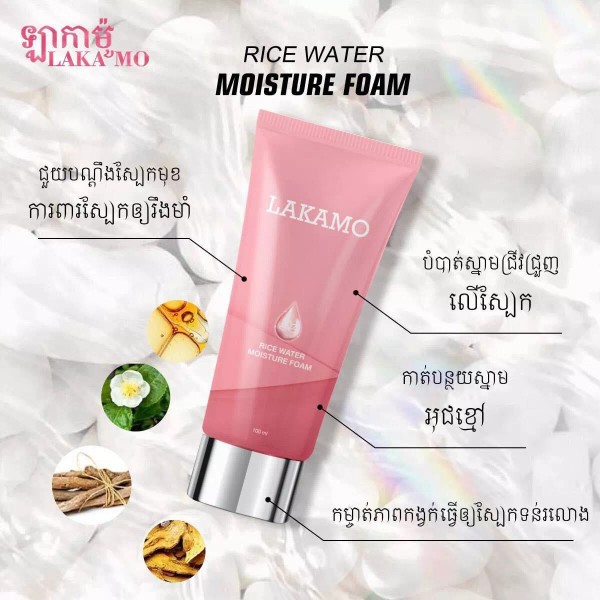 Lakamo Rice Water Moisture Foam ហ្វូមលាងមុខ ឡាកាម៉ូ ( 1b/100ml ).